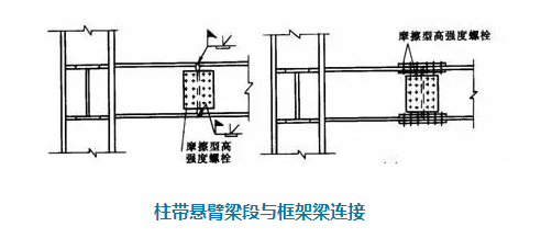 ②工字形截面柱和箱形截面柱通過帶懸臂梁段與框架梁連接時(shí),構(gòu)造措施有兩種: