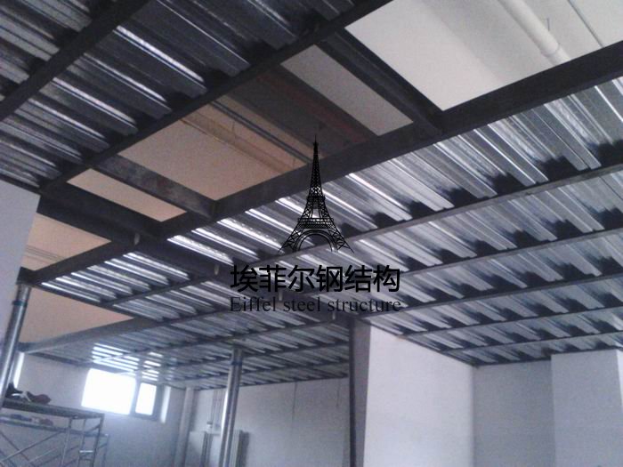 二、鋼結(jié)構(gòu)框架鋪設(shè)鍍鋅成型鋼樓板,再綁扎鋼筋網(wǎng)2層,然后澆筑混凝土。鋪設(shè)水泥壓力板部分要注意樓板兩邊搭接要搭接在鋼龍骨的主梁上,不要搭接在空處。鋪板時(shí)注意板與板之間最好留3mm的伸縮縫,使用防水伸縮建筑膠作為填縫劑。使用自攻螺絲釘固定,使用自攻螺絲釘將樓板固定在鋼龍骨上。