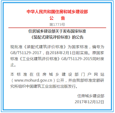 | 國家標(biāo)準(zhǔn)《裝配式建筑評(píng)價(jià)標(biāo)準(zhǔn)》2月1日起實(shí)施 |