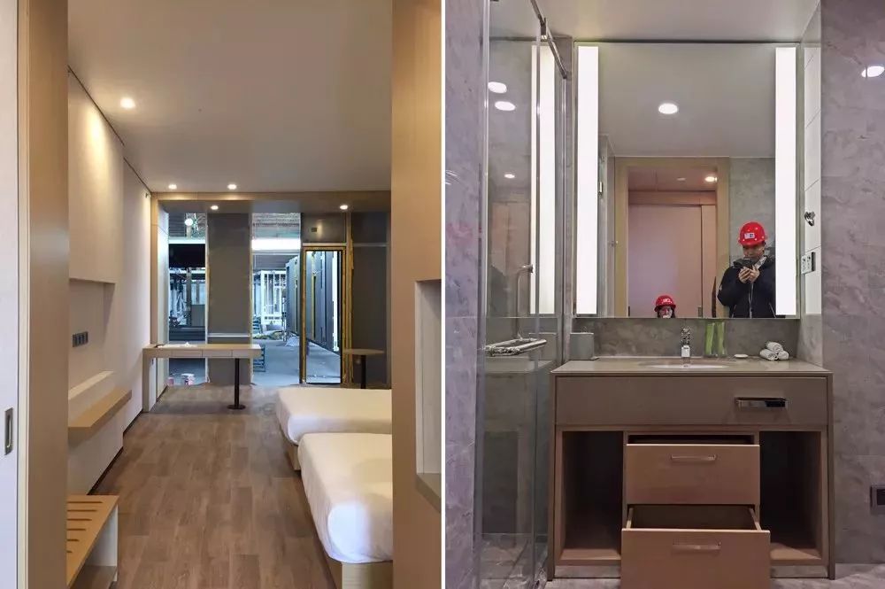 得益于全裝配化、集成化的建造技術,箱體模塊實現(xiàn)了工廠化生產,連內部裝修都是同步到位。運送到施工現(xiàn)場后,只需經過簡單安裝即可完成。箱體適合運輸,便于靈活組合,也避免了濕作業(yè),減少施工的季節(jié)限制。