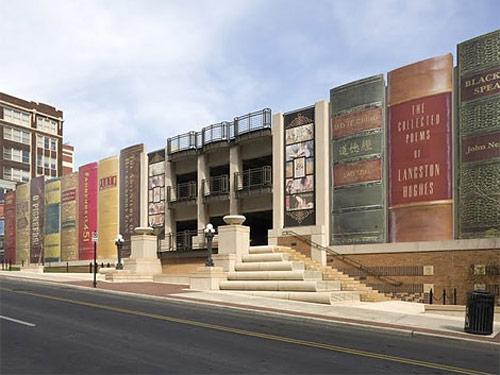 堪薩斯市公共圖書館(Kansas City Public Library)位于美國密蘇里州堪薩斯城,于1873年建成,但是它引人注目的原因并不是館中藏書豐富,而是停車場的獨特造型——“書架”。“書架”上“擺放”著22本古典文學(xué)圖書,包括《指環(huán)王》《二十二條軍規(guī)》《夏洛特的網(wǎng)》等,全都是堪薩斯城居民推薦的圖書,其中書脊高7.6m,寬2.7m,立于墻面,兩本“書”之間用金屬樓梯井連接,模仿“書擋”,整個建筑猶如巨大的書架,體現(xiàn)了堪薩斯城居民對圖書的熱愛,因此被譽為“美國最酷的圖書館”。