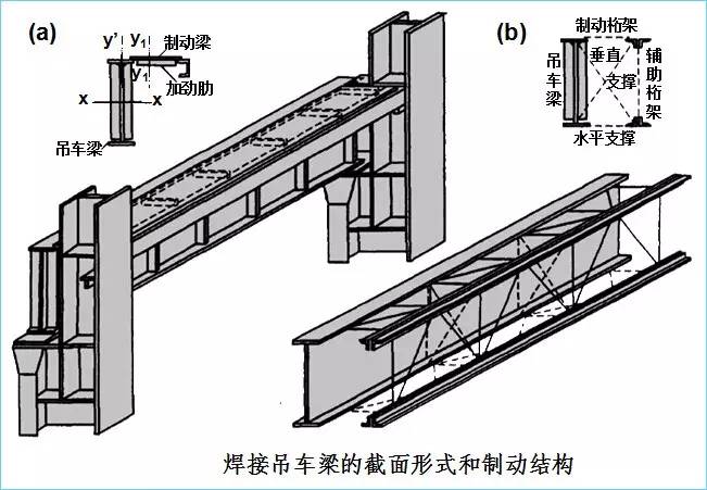 常見的形式有:型鋼梁(1)、組合工字型梁(2)、箱形梁(3)、吊車桁架(4)等。