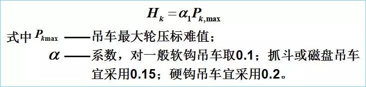 3、進(jìn)行強(qiáng)度和穩(wěn)定計(jì)算時(shí),一般按兩臺(tái)吊車的最不利荷載考慮;疲勞計(jì)算時(shí)則按一臺(tái)最大吊車考慮。