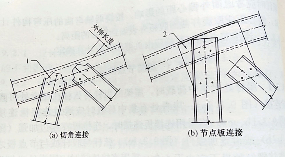 1-外伸切角;2-節(jié)點板