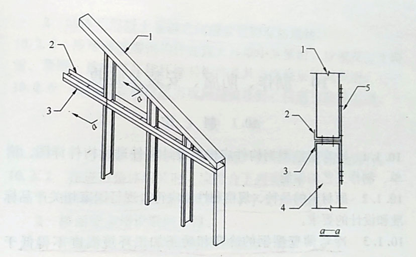 1-山墻屋架;2-底層梁;3-頂導梁;4-山墻;5-條形連接件