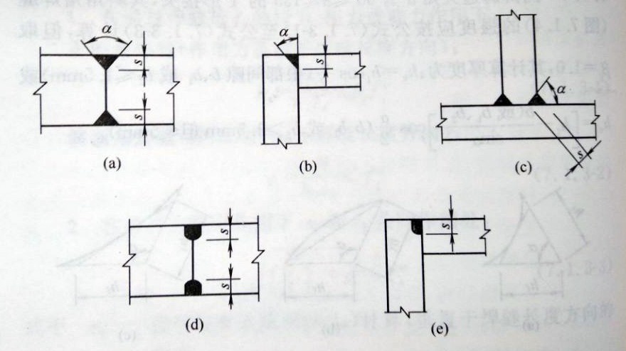 五、部分焊透的對(duì)接焊縫(圖3a、b、c、d、e)和T形對(duì)接與角接組合焊縫(圖3c)的強(qiáng)度,應(yīng)按角焊縫的計(jì)算公式3至公式5計(jì)算,在垂直于焊縫長(zhǎng)度方向的壓力作用下,取βf=1.22,其他受力情況取βf=1.0,其計(jì)算厚度應(yīng)采用: