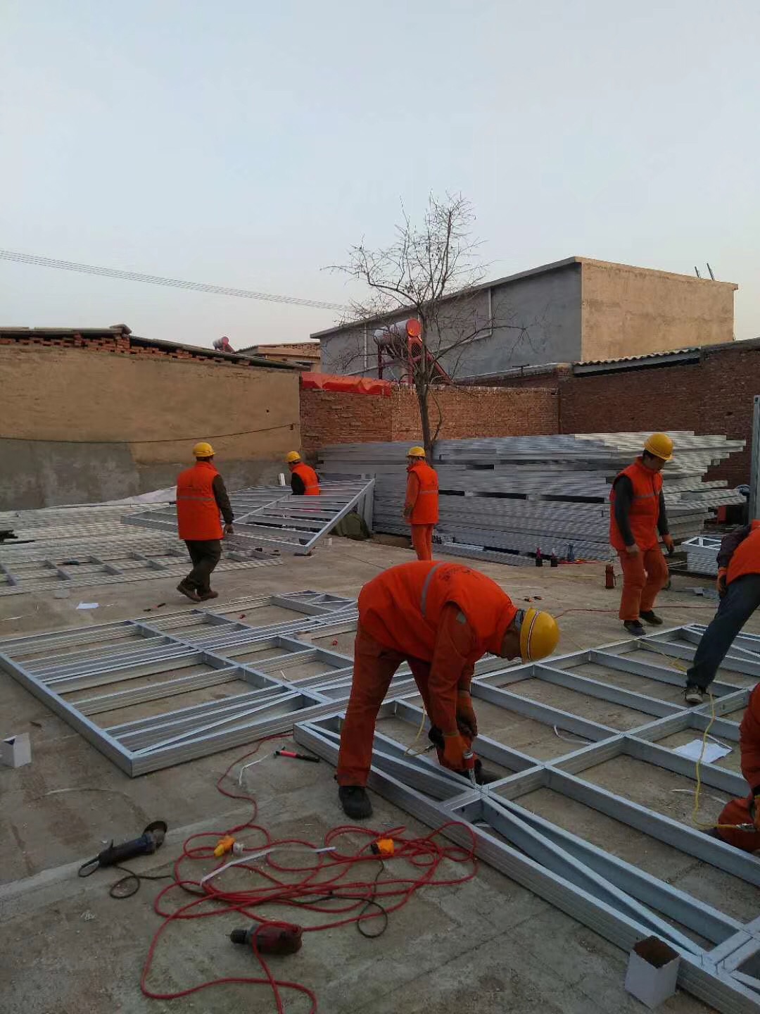 輕鋼別墅欒城項(xiàng)目進(jìn)入輕鋼龍骨組裝階段