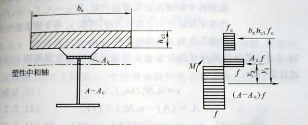 圖11.2.1-2塑性中和軸在鋼梁內(nèi)時的組合梁截面及應力圖形