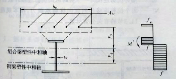 圖11.2.1-3負彎矩作用時組合梁截面及應力圖形