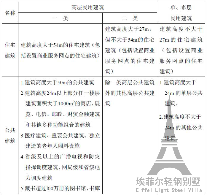 5.1.1 民用建筑根據(jù)其建筑高度和層數(shù)可分為單、多層民用建筑和高層民用建筑。高層民用建筑根據(jù)其建筑高度、使用功能和樓層的建筑面積可分為一類和二類。民用建筑的分類應(yīng)符合表5.1.1的規(guī)定。