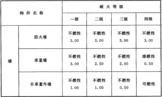 表5.1.2 不同耐火等級建筑相應(yīng)構(gòu)件的燃燒性能和耐火極限(h)