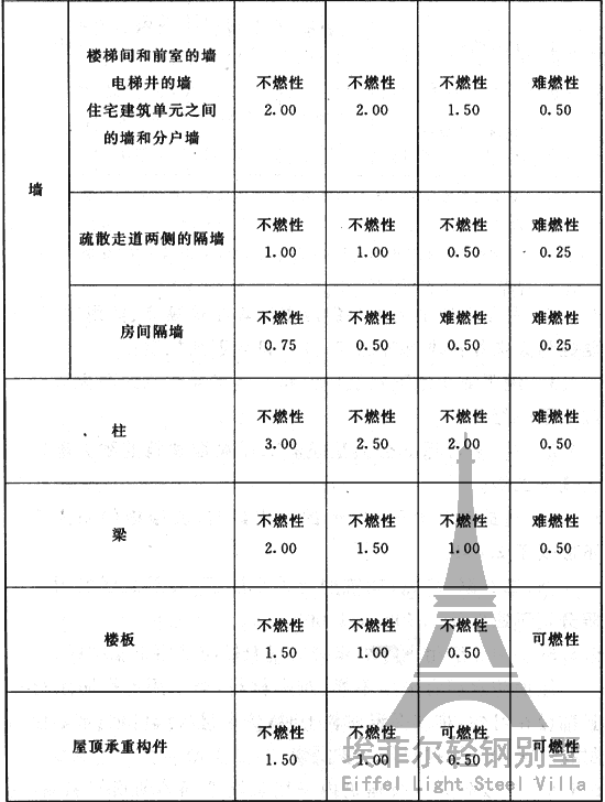 2 住宅建筑構(gòu)件的耐火極限和燃燒性能可按現(xiàn)行國家標(biāo)準(zhǔn)《住宅建筑規(guī)范》GB 50368的規(guī)定執(zhí)行。