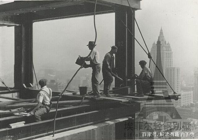 【工人正在高空作業(yè)】紐約帝國大廈,位于曼哈頓第五大道350號(hào)、西33街與西34街之間,是紐約永久性地標(biāo)建筑之一,在世界貿(mào)易中心興建之前,一直是紐約市最高的建筑,并且在很長(zhǎng)一段時(shí)間內(nèi)也是全球最高的建筑。帝國大廈始建于1929年3月17日,竣工于1931年4月11日,短短400多天就完成了修建。(這是一組反映帝國大廈修建過程的照片,建筑工人們?cè)诟呖兆鳂I(yè)完全無任何防護(hù),讓人看得戰(zhàn)戰(zhàn)兢兢,后背發(fā)涼。)