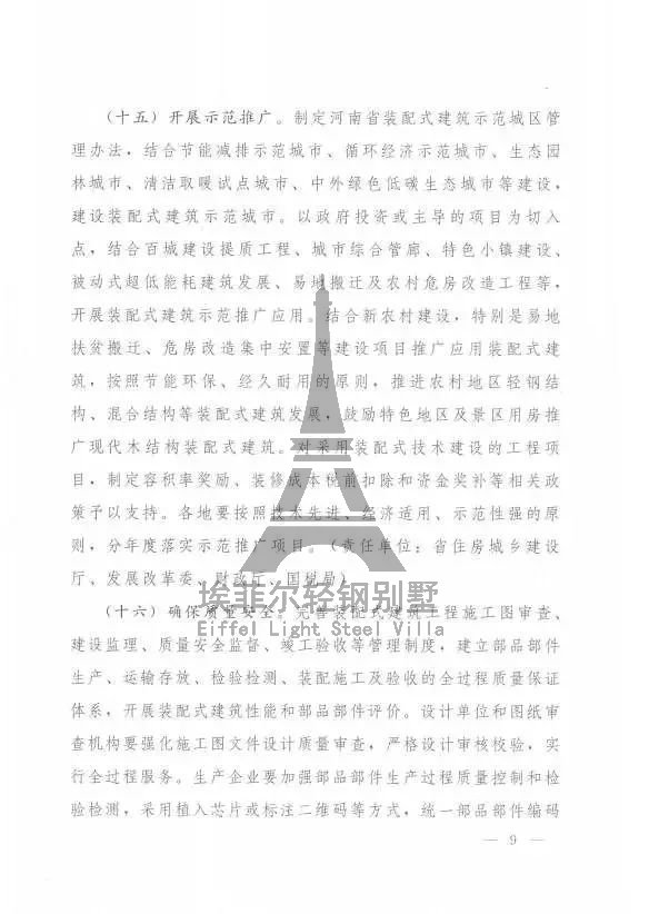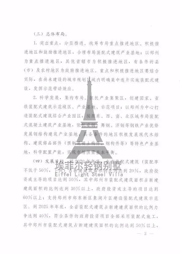 (1)到2020年年底,全省裝配式建筑占新建建筑面積的比例達(dá)到20%,政府主導(dǎo)的項(xiàng)目達(dá)到50%;其中鄭州市新建建筑面積的比例要達(dá)到30%,政府主導(dǎo)項(xiàng)目要占60%以上。